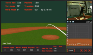 Each session begins with high-quality video capture and comprehensive data collection using HitTrax technology. We analyze key performance metrics such as assessing Pop Time, throwing accuracy, Transfer Time and Outcome of throw.